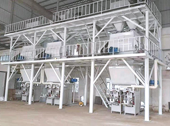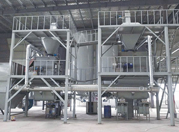 膩?zhàn)臃凵a(chǎn)線主要由原料儲存系統(tǒng),輸送系統(tǒng)、計量稱重配料系統(tǒng)、混合系統(tǒng)、氣動系統(tǒng)、除塵系統(tǒng)、包裝系統(tǒng)及自動控制系統(tǒng)...